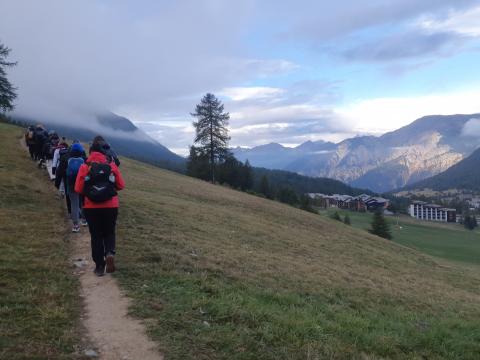 On sort nos affaires de randonneur-se pour partir à l’ascension du Mont Chenaillet, situé à quelques pas de la frontière italienne et qui culmine à 2650 mètres (le bus nous amène à Montgenevre situé à 1900 mètres d’altitude).